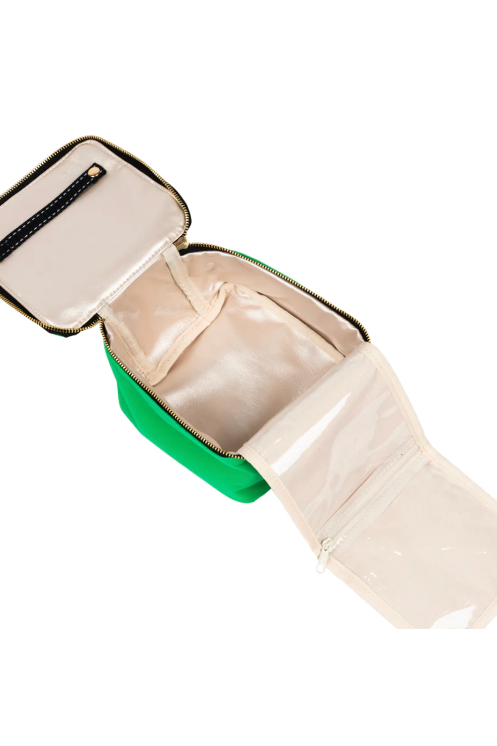 Bracelets, earrings, chunky necklaces, and rings? Bring all the jewelry you want on your next adventure because this deep, compartmentalized jewelry case can handle it all. There's countless ways to organize your precious gems (and avoid tangling) with a roomy main compartment, three drawstring cotton pouches, and a clear compartment in the lid that snaps shut. Hidden Gem zips open from either side and sits upright for easy loading/viewing.