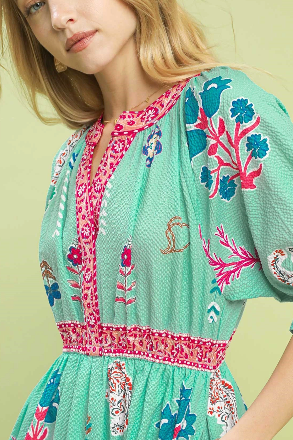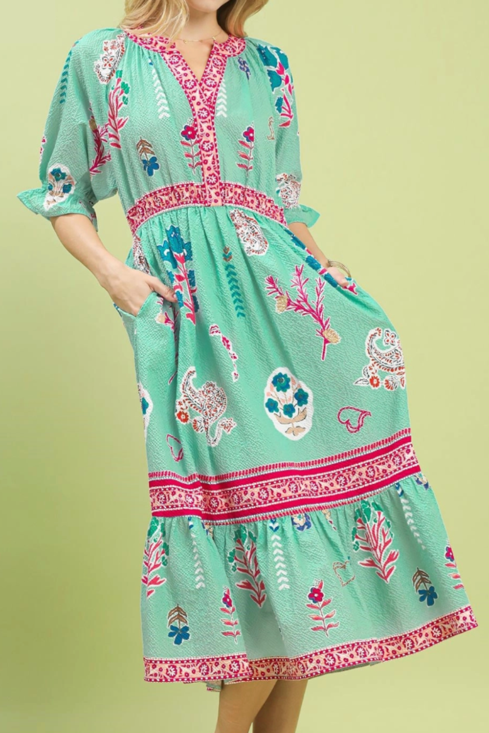 Floral Collage V-Neck Midi Dress - Mint Mix