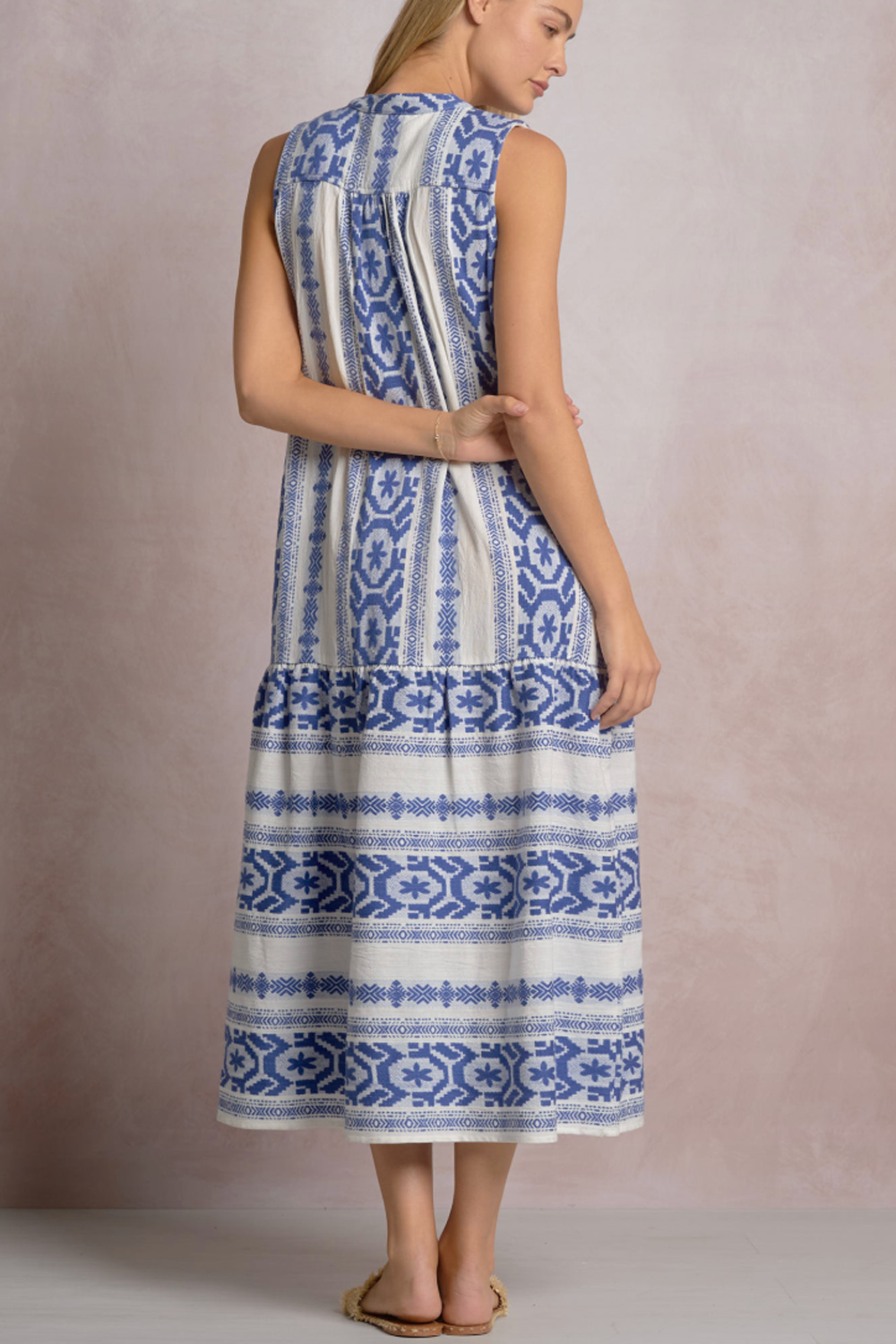 Get ready to turn heads in this stunning dress. Perfect for summer, this dress is a gorgeous combination of boho and preppy style. Look effortlessly stylish and feel confident in this must-have piece.