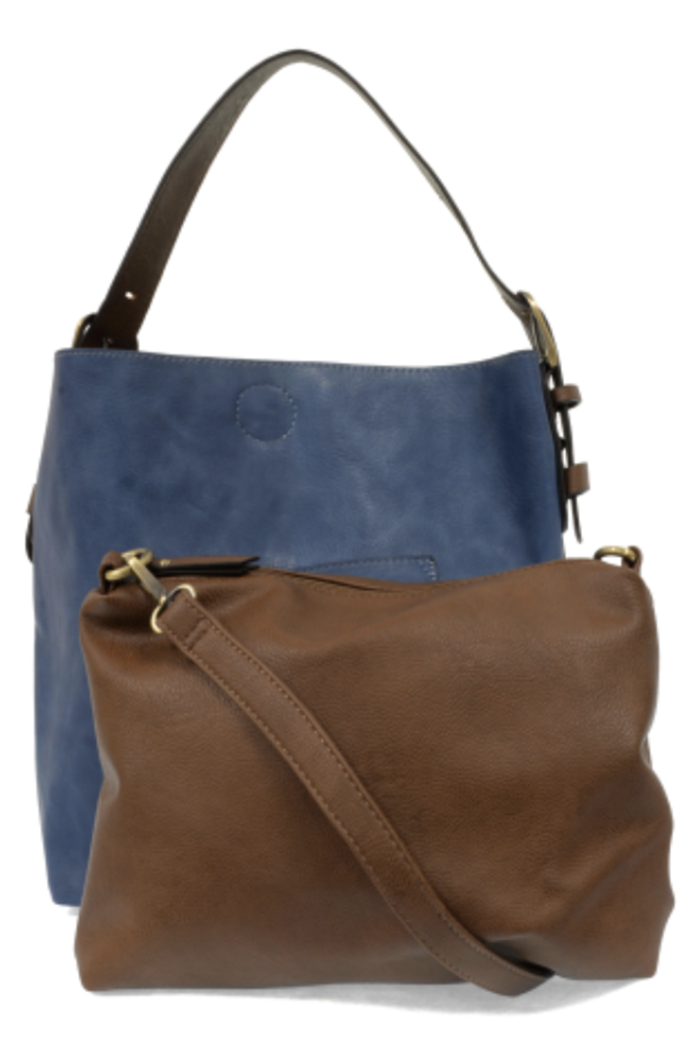 Equally timeless and modern, our best-selling classic hobo is made in rich vegan leather in beautiful colors always accented with neutral straps.  This roomy bag accented with a large front pocket and a snap-in removable crossbody, has plenty of room to carry your needs in style.