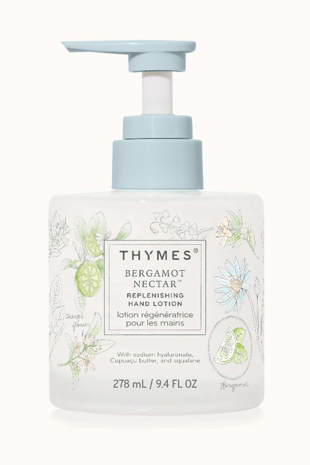 Help unveil your skin's natural beauty with this replenishing hand lotion. A blend of sodium hyaluronate, squalane, and cupuaçu butter helps reduce dryness and moisture loss. Fresh notes of bergamot, orange flower, lemon, and sandalwood add a spa-like experience to your routine. The glass bottle sits beautifully on any sink and pairs seamlessly with our Bergamot Nectar Nourishing Hand Wash.