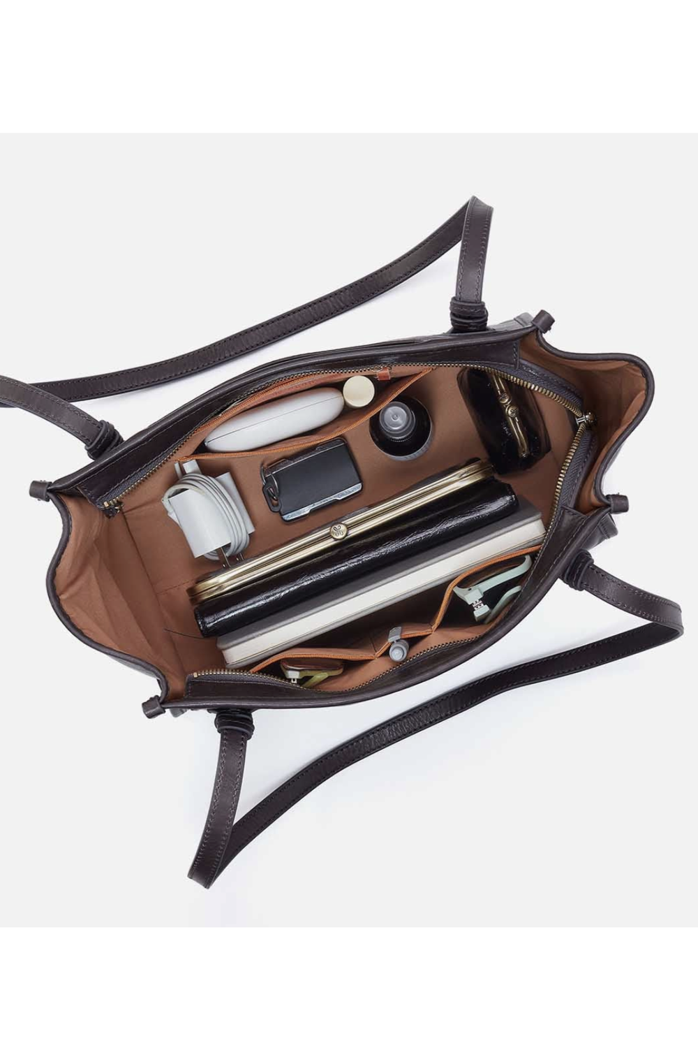 This structured east-west tote is designed with movement in mind. Flexible side panels let you pack it full, while artisan-woven accents blend handcrafted detail into the design. This tote is ready for your next adventure.