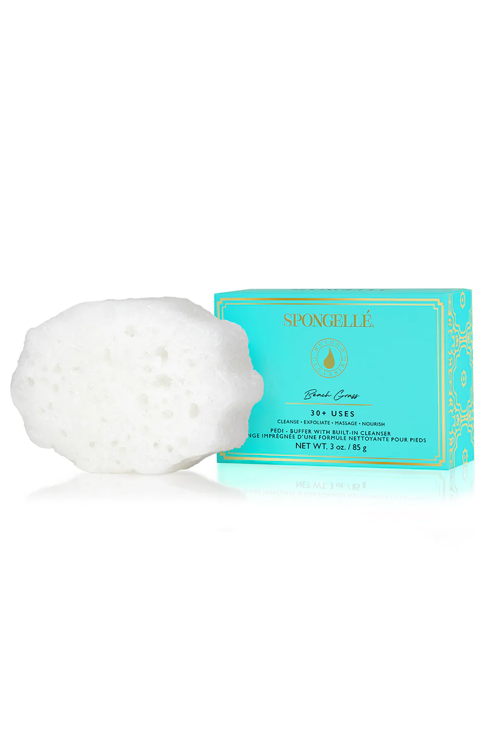 Formulated just for your feet, this buffer has a unique textured side that gently whisks away dry skin while cleansing, so feet are soft and silky. Enriched with extracts of peppermint and sea kelp to cleanse, buff and polish, Spongellé’s Pedi Buffer is the perfect solution for tired feet. Packaged in an easy to use size for travel.