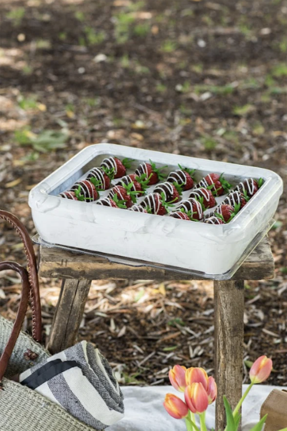 Designed for versatility, the ribbed bottom promotes airflow to help maintain your food's temperature, whether hot or cold. When it’s time to serve, just remove the clear cover and place it underneath the Fancy Panz to use as a trivet. If you're leaving the event early, you can easily leave the foil pan behind or dispose of it, avoiding the hassle of transporting dirty dishes or losing a favorite serving piece.