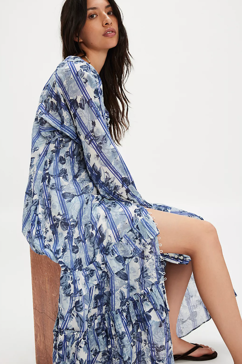 Just as effortless as it is essential, this versatile maxi dress is featured in a button-front silhouette with exaggerated sleeves and ruffled trims for the perfect femme finish.
