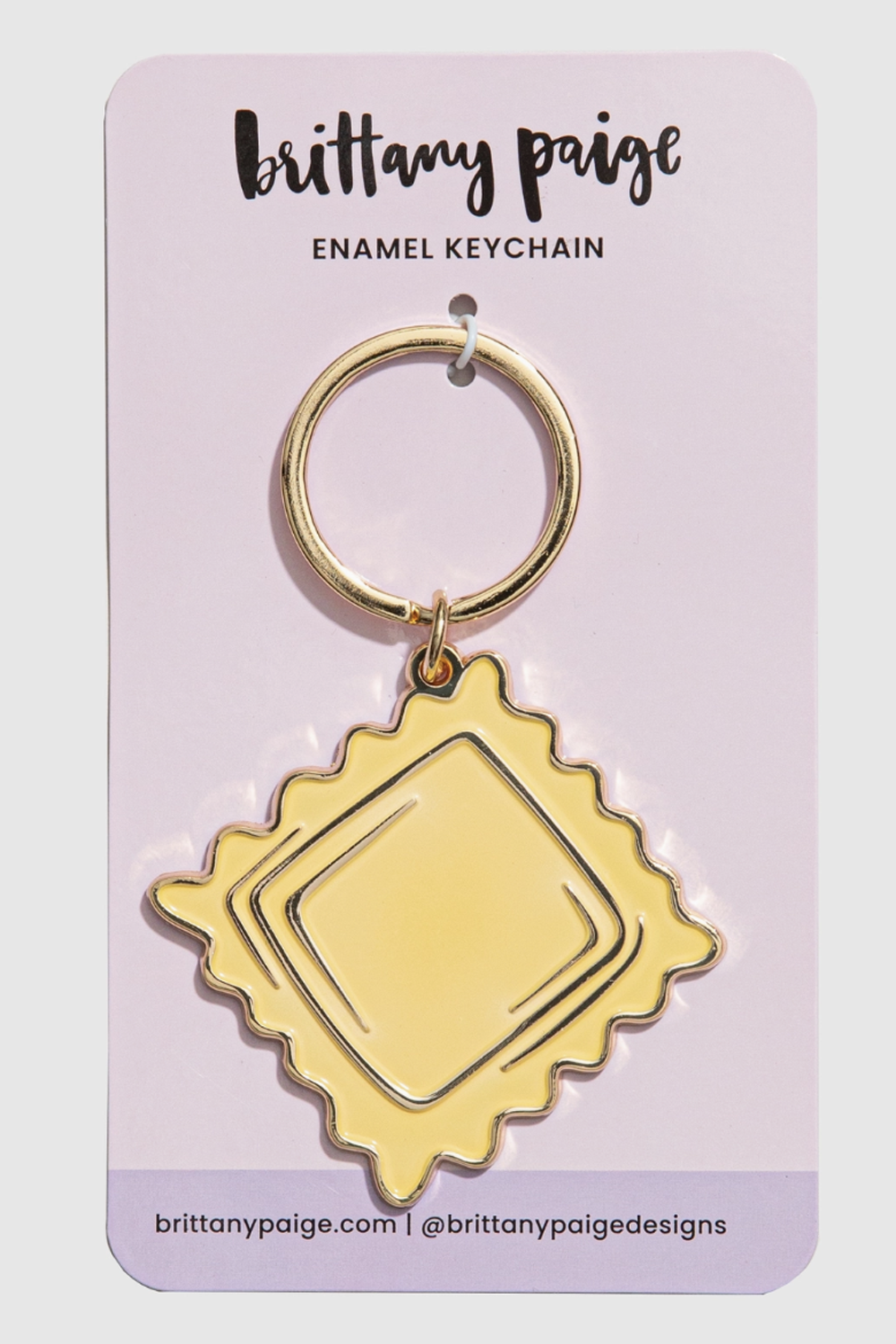Add a little flavor to your keys or bag with this ravioli enamel keychain — your favorite pasta. Soft enamel metal keychain / bag charm. Measures approximately 2-3". Made in China. Keychains come packaged in a clear cello plastic bag with hang tab.