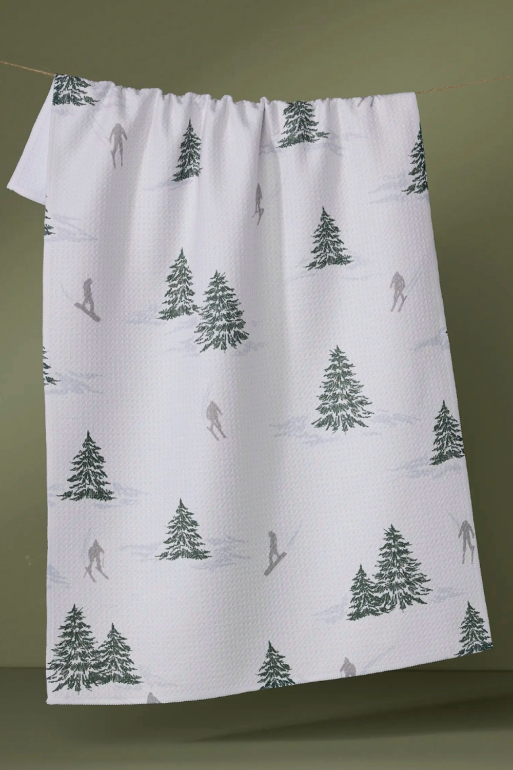 18" x 30" kitchen tea towel made from recycled polyester | weight: 320 gsm | single-sided print | hang loop | waffle weave construction | quick-drying | superior cleaning | next-level absorbency