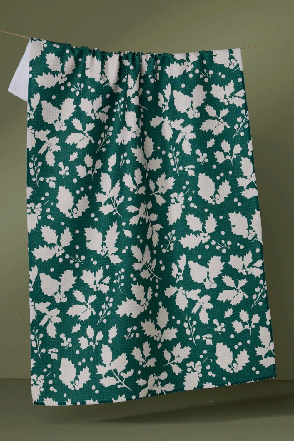18" x 30" kitchen tea towel made from recycled polyester | weight: 320 gsm | single-sided print | hang loop | waffle weave construction | quick-drying | superior cleaning | next-level absorbency