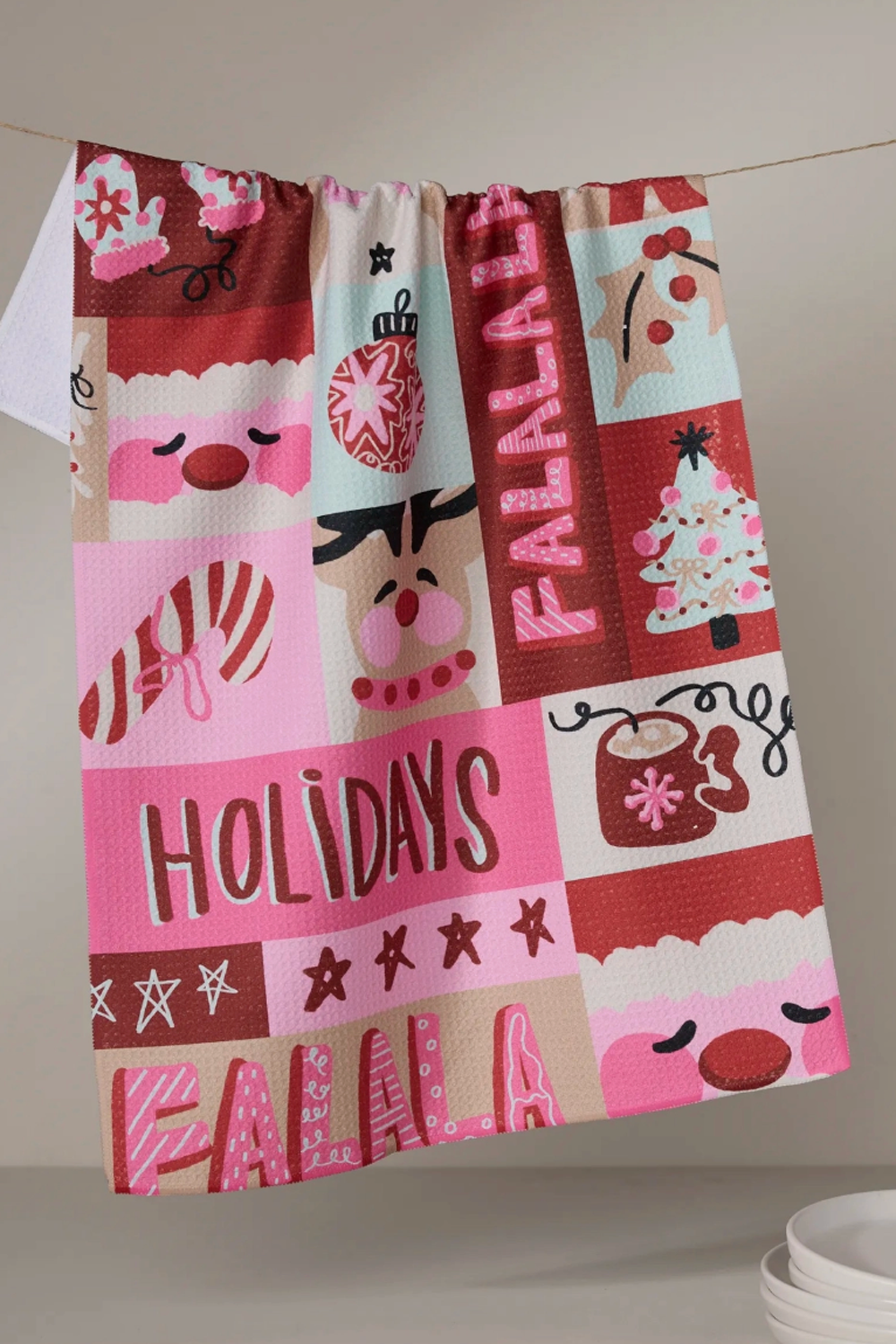 18" x 30" kitchen tea towel made from recycled polyester | weight: 320 gsm | single-sided print | hang loop | waffle weave construction | quick-drying | superior cleaning | next-level absorbency