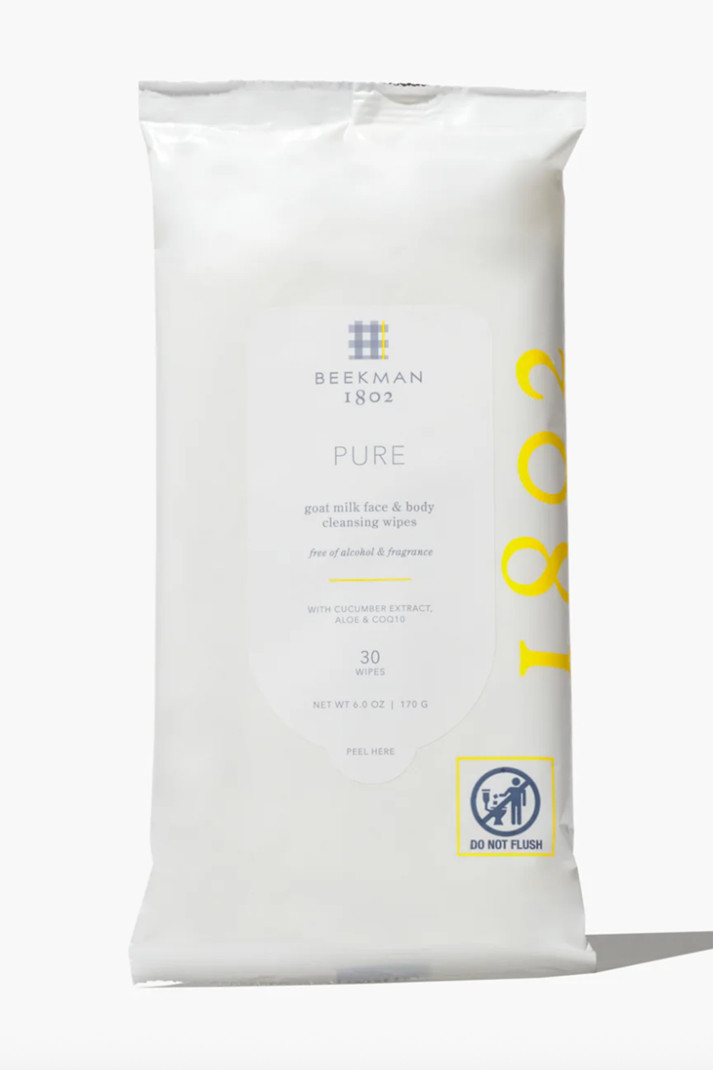 Get ooh la la clean! With a pack of our goat milk wipes in your purse, gym bag, car (or wherever), you can freshen up anytime! Enriched with goat milk, cucumber, aloe, and CoQ10, a fancy name for a natural antioxidant, these fragrance-free wipes are sure to be the ultimate refresher. Wipes come in a 30 count.