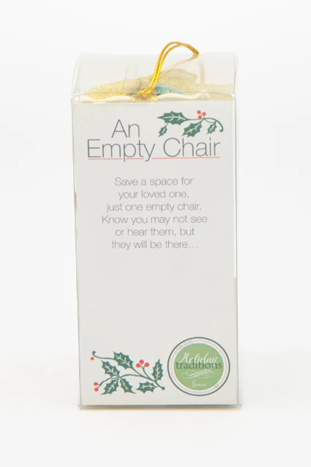 Honor loved ones this season with the Empty Chair Memorial Ornament from the Holiday Traditions collection. Made of wood with a festive wreath and golden bow, it carries the touching message: “Save space for your loved one; just one empty chair. Know you may not see them, but they will be there...” A comforting keepsake to remember those no longer with us.