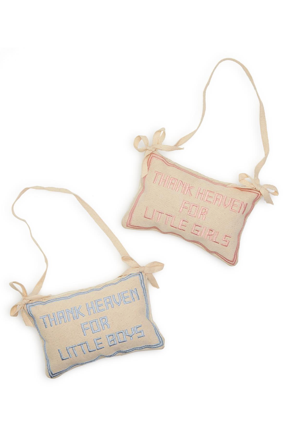 - Assorted 2 sayings and colors: Thank Heaven for Little Girls/Pink and Thank Heaven for Little Boys/Blue.