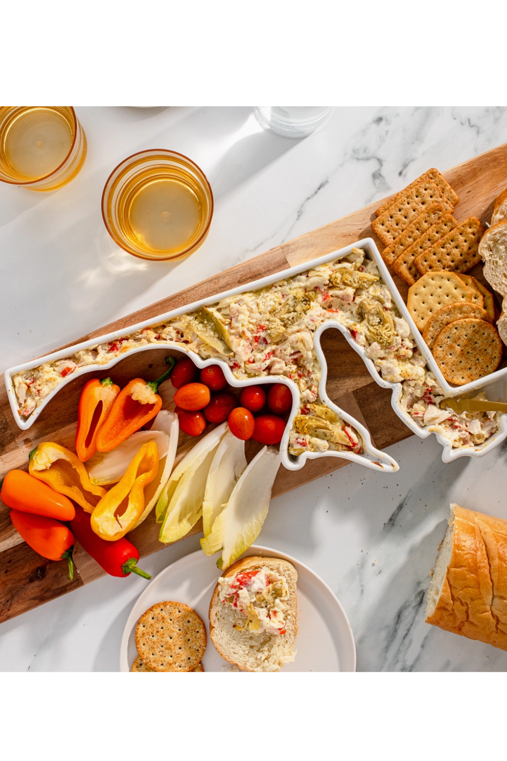 Bring your love of Maryland into the kitchen and serve up state-shaped casseroles, dips, entrees, appetizers, pies, cakes, favorite holiday dishes, family recipes, and more. Crafted in high-fire porcelain and sealed with glossy white glaze for a non-stick surface, this Maryland-shaped bakeware is free of all lead and toxins which means it's safe for food use in the oven, microwave, and dishwasher.