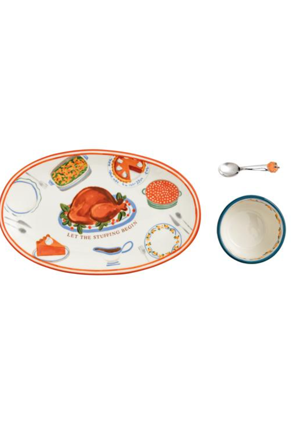 Elevate your holiday gatherings with this exquisite Turkey Dinner Tray and Dip Set, a 3-piece ensemble designed to impress. The ceramic tray showcases a beautifully hand-painted rim, adding a touch of elegance to your table setting. Accompanying the tray is a coordinating dip bowl, perfect for serving your favorite sauces or condiments. The set is completed with an enamel pumpkin handle spoon, adding a festive flair to your dining experience. The tray measures 6 3/4" x 11 1/4", providing ample space for your culinary creations, while the dip bowl, at 2" x 3 3/4" in diameter, is ideal for a variety of dips. The 3 1/2" spoon is perfectly sized for easy serving. Crafted from durable dolomite, this set is not only stylish but also built to last, making it a delightful addition to your seasonal celebrations.