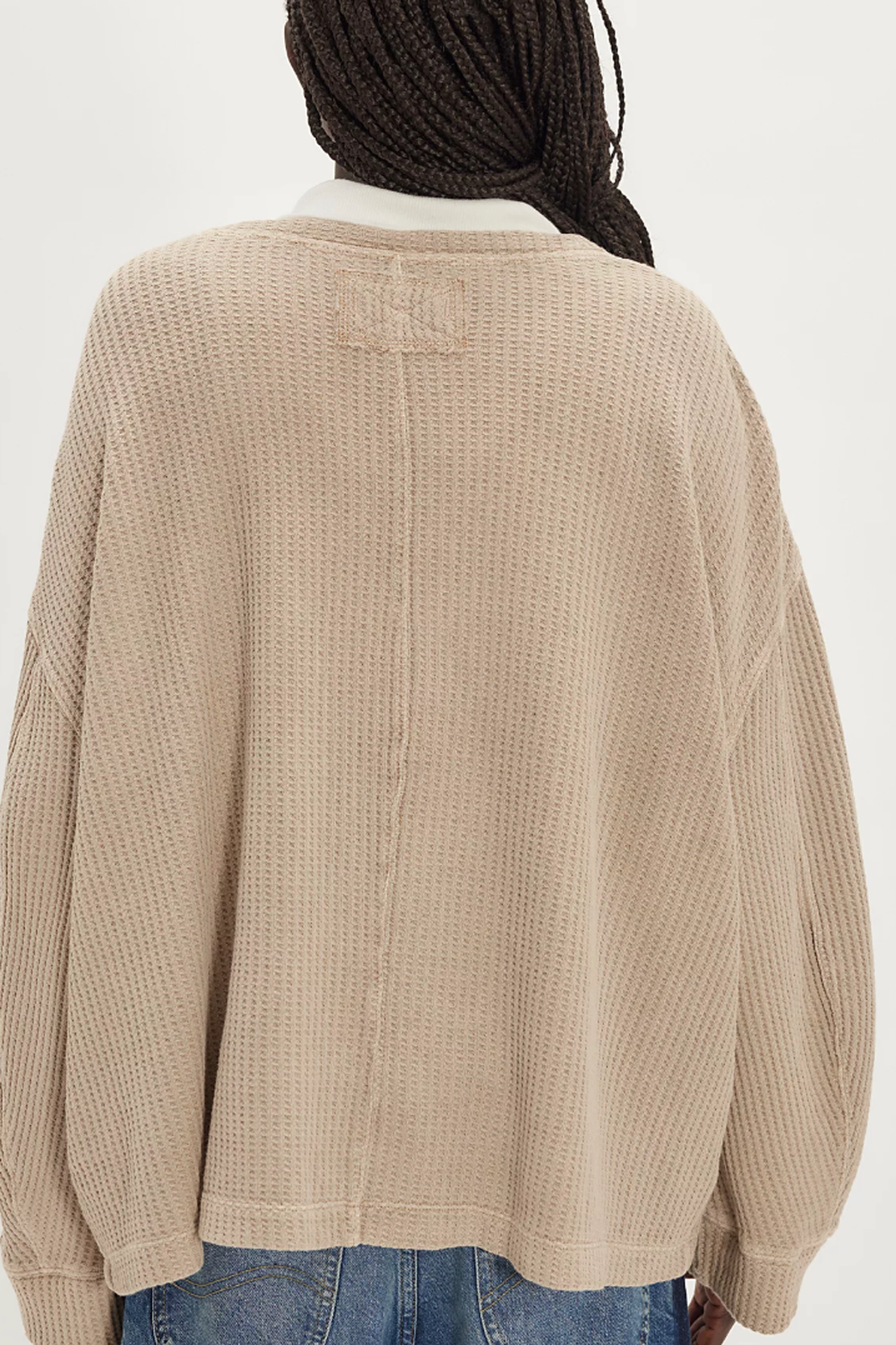So essential from our We The Free collection, this waffle knit top features soft cotton fabrication, a slouchy, relaxed silhouette, and exaggerated drop shoulders for a go-to comfy staple.