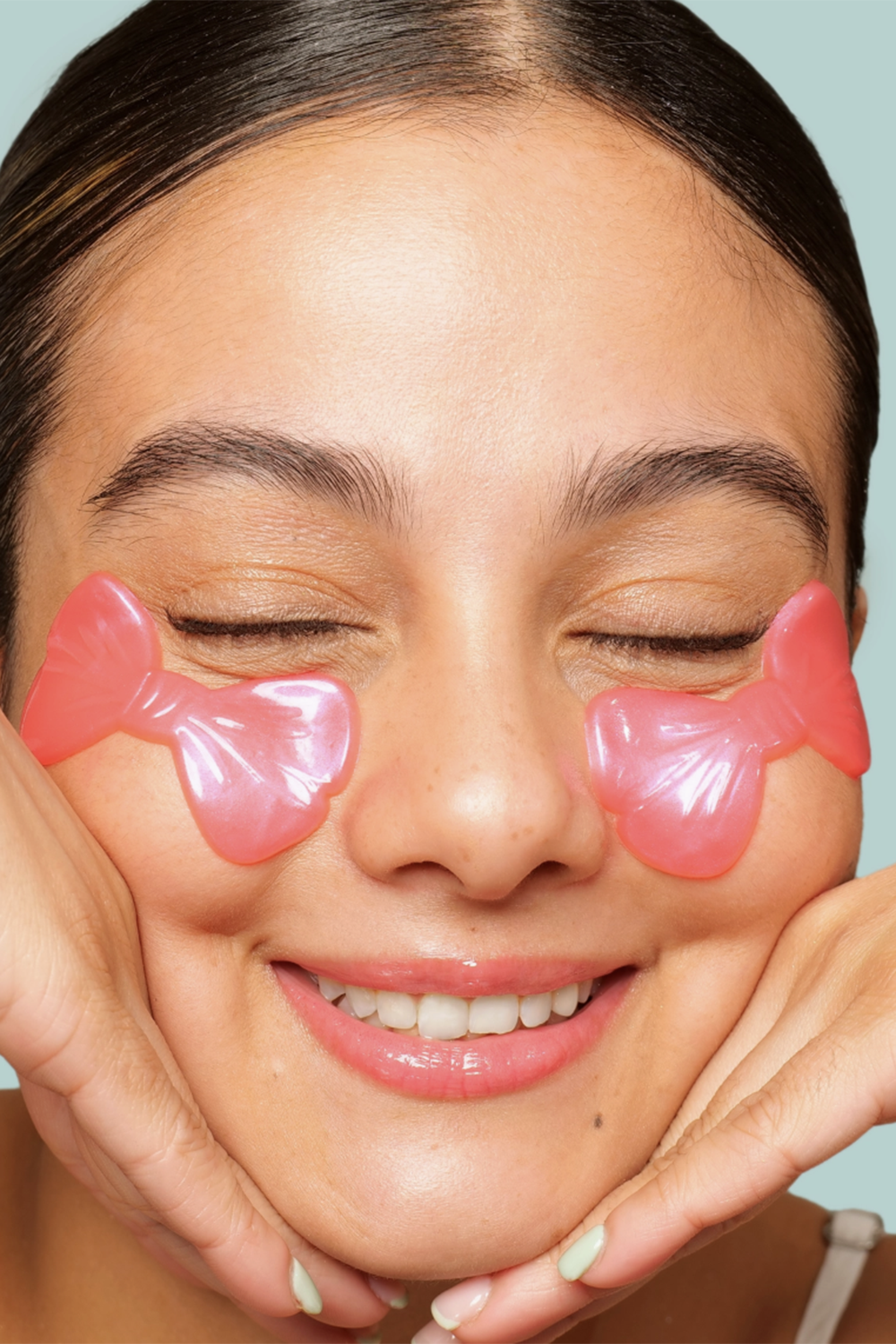 Rosewater-infused undereye masks to hydrate & brighten. With energizing caffeine and collagen-boosting peptides, these lovely-looking, bow-shaped undereye masks de-puff and smooth dull, tired skin. Hero ingredient rosewater brightens the look of dark circles while adding moisture. *Patch test on sensitive skin. Why We Love it: * Time to Chill: Keep masks in the refrigerator for a cooling and soothing effect ahead of application. * 2-in-1 Formula: Soaked in a revitalizing, 2-in-1 serum blend for optimal effect. * Adorable Design: Think unique self-care, made to make you smile. LET'S DO THIS: * Apply to clean & dry under eye area. * Leave on for 15–20 mins. * Remove & discard after single use. * Gently massage in excess serum until it’s fully absorbed. . * Marvel at your fresh glow! PRO TIP: Don’t let the masks’ free-radical fighting power go to waste: protect eyes with sunglasses when exposed to UV rays