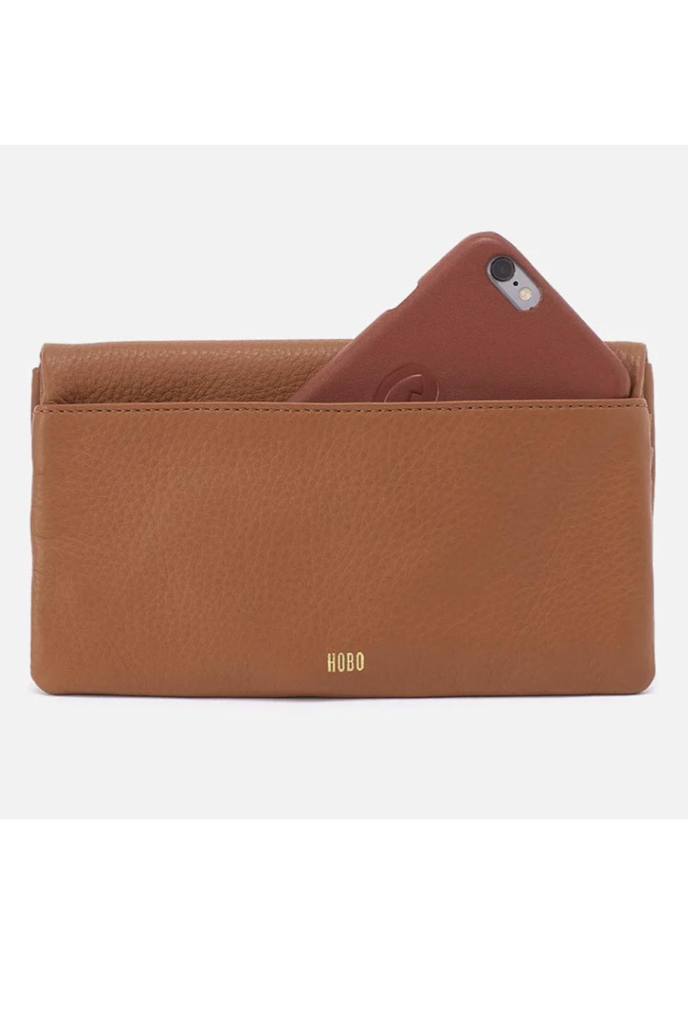 Lumen has an exterior pocket with a leather tassel zipper pull and a slip pocket for your phone, plus an interior made for all of your wallet essentials.