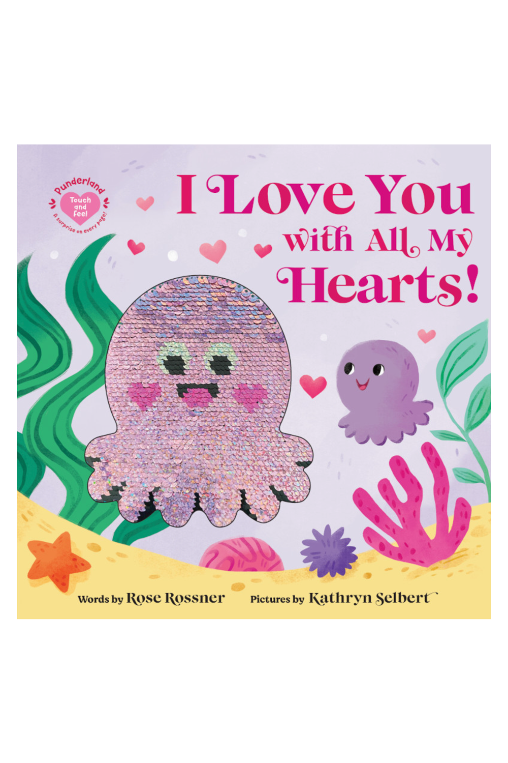 Tell your octo-cutie you love them with all your hearts in this punny touch-and-feel board book for babies and toddlers! From the USA Today bestselling series that brought you I Love You Like No Otter comes the next sweet story, perfect for reminding your fin-tastic little one that they mean the world to you. I Love You with All My Hearts! is filled with mer-mazing puns and rawr-some illustrations of fun animals — including axolotls, unicorns, and dinosaurs! With interactive elements on every page, from sequins to glitter, this adorable board book is made for the small hands of axo-littles ages 0-3! A charming gift of love and encouragement, this book is the perfect way to tell your little one you love them a llama this Valentine’s Day or any time of year! You’re my octo-cutie! My hearts for you ring true. More charming stories from Punderland, the perfect gift for any occasion:I Love You Like No Otter – A USA Today bestseller! Somebunny Loves You – A USA Today bestseller! There's Snow