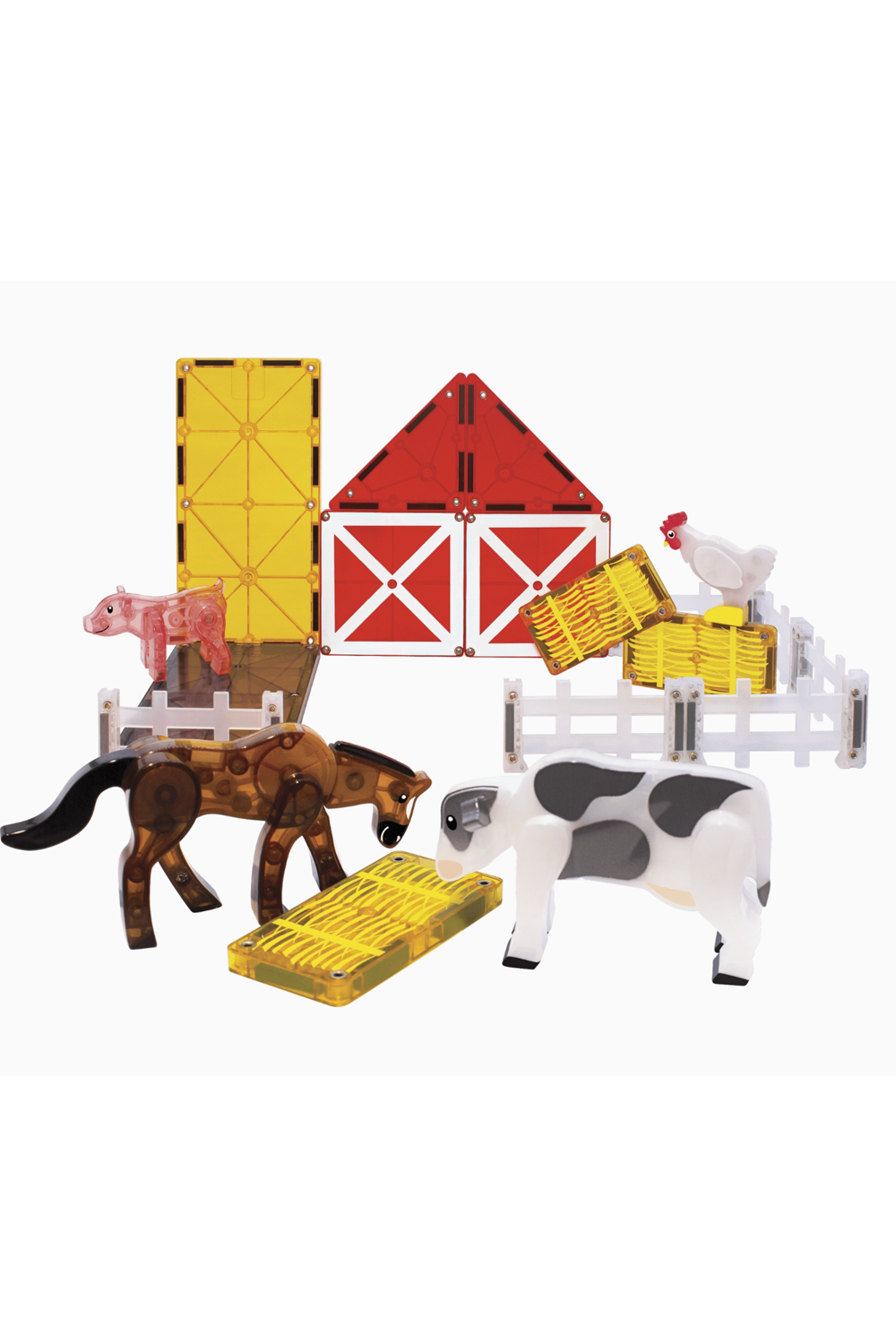 Time for some MAGNA-TILES® fun down on the farm! Your little farmer will love learning and caring for animals, through hands-on, screen-free play. Discover the excitement of imaginative play with unique animal friends, realistic barn and hay tiles, as well as the first-ever magnetic fence pieces, found only in the Farm Animals 25-Piece set.