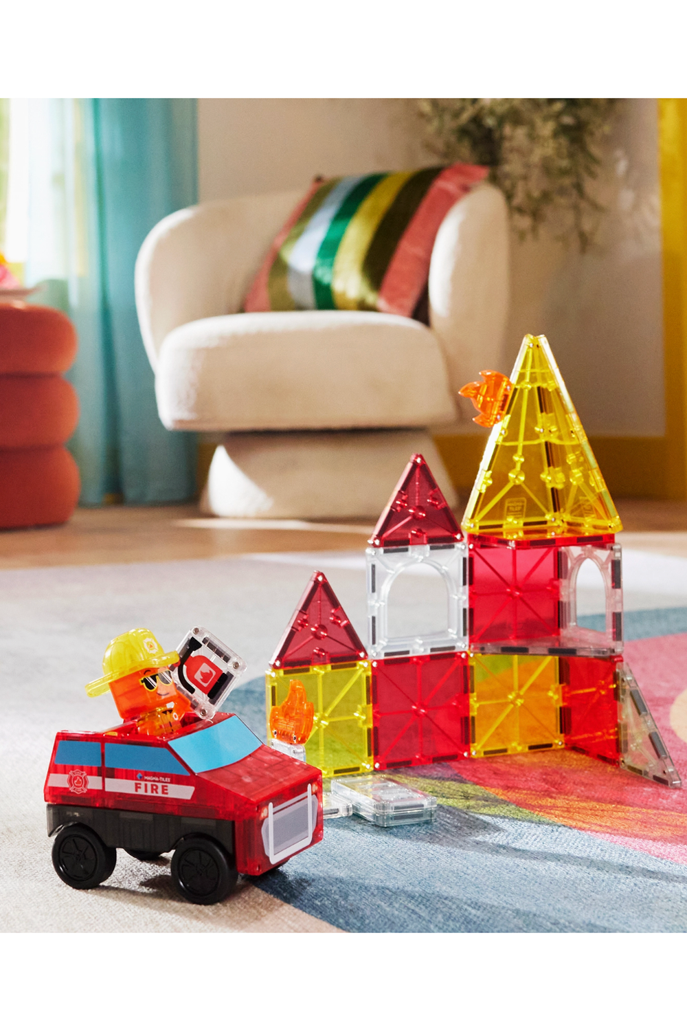Fire Rescue 27-Piece Set: Embark on exciting firefighting missions with MAGNA-TILES® Fire Rescue! Send the fire chief car and figure into action at top speed with the Pullback Chassis. Enhance the action with realistic Fire Tiles to knock down and ladders to climb, reaching every blaze in the nick of time. Designed to spark creativity and encourage imaginative play, MAGNA-TILES® Fire Rescue complements the Fire Station Set for even more dramatic rescue operations. Together, the Fire Rescue and Fire Station Sets turn your MAGNA-TILES® city into a hub of teamwork, excitement, and heroism. Who’s ready to answer the call and save the day?