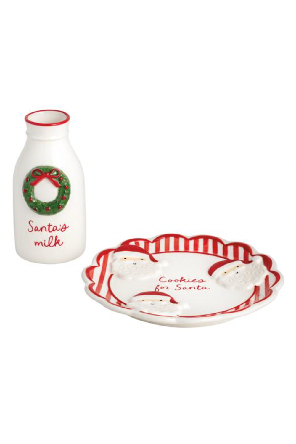 Delight in the festive spirit with our Whimsical Christmas Cookies For Santa Set, a charming 2-piece collection perfect for holiday celebrations. This set features a beautifully hand-painted cookie plate adorned with a scallop edge, adding a touch of elegance to your Christmas Eve traditions. The coordinating milk jug complements the plate, creating a cohesive and enchanting presentation. Crafted from durable stoneware, the plate measures 6 1/2 inches in diameter, providing ample space for Santa's favorite treats, while the jug holds up to 7 ounces of milk, ensuring Santa stays refreshed throughout his journey. Ideal for creating magical memories, this set is a must-have for any holiday gathering.